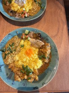贅沢に3種類のスパイスカレーをかけてもらいいただいた。